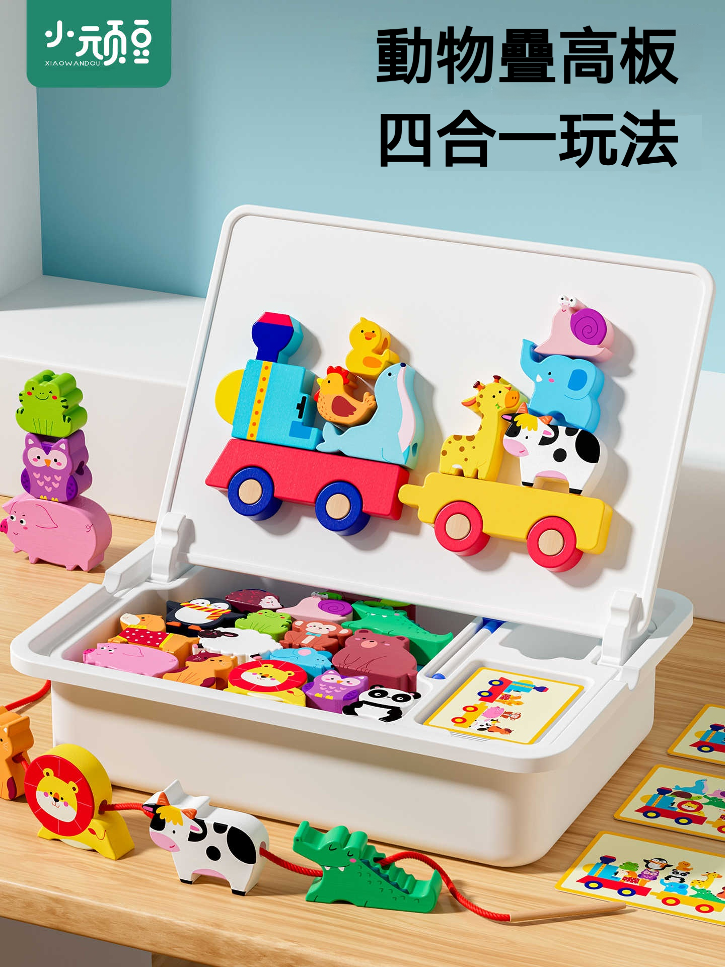 ✨越玩越聰明!蒙特梭利式兒童大積木拼裝玩具 | 串珠+疊高+拼圖一盒三玩 | 食品級材質安心啃咬 | 高CP值益智禮物推薦✨